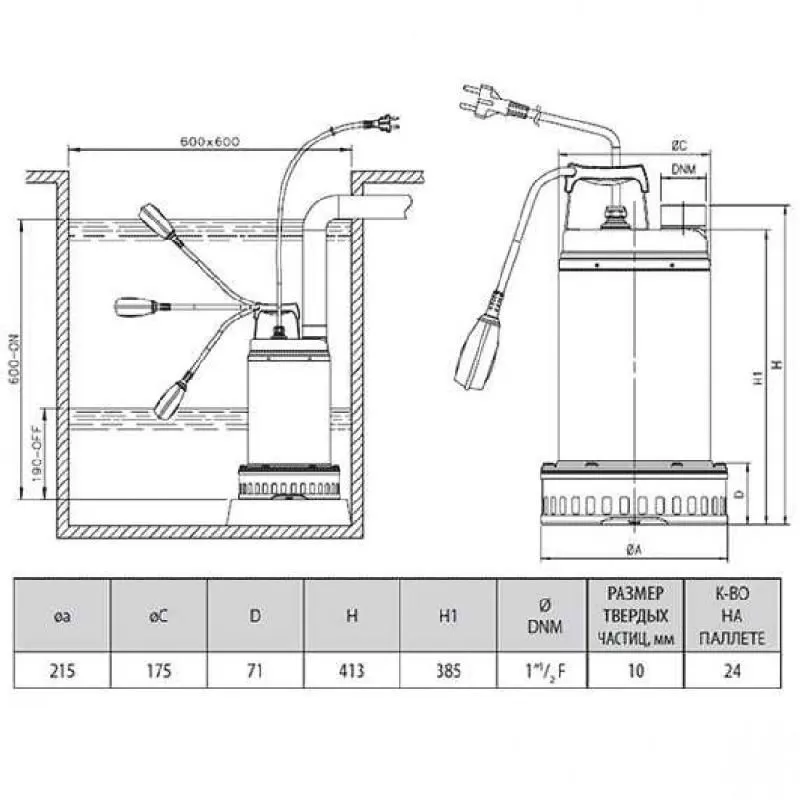 Схема дренажного насоса DAB DRENAG 1200 M-NA
