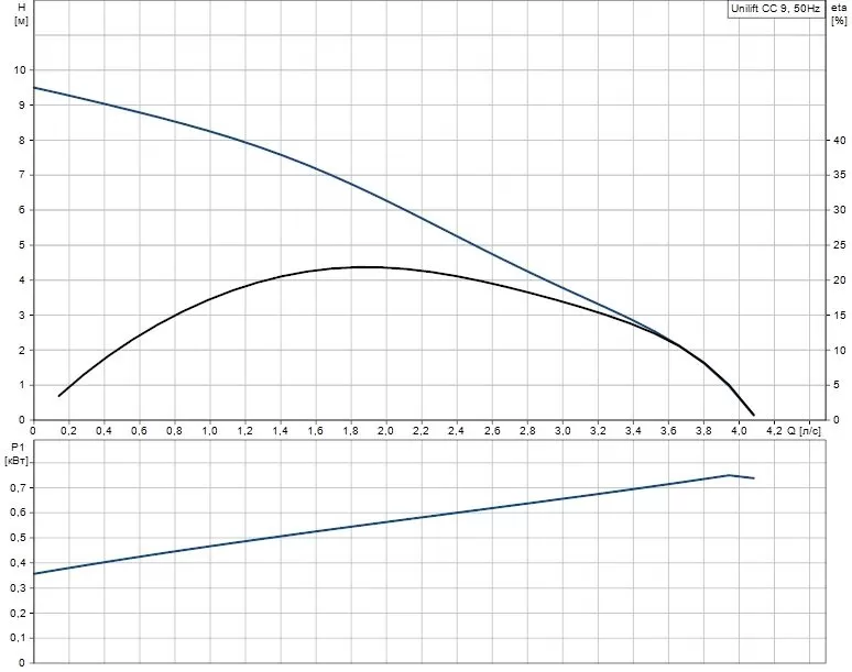 Одноступенчатый погружной дренажный насос Grundfos UNILIFT CC 9 M1 с вертикальным напорным патрубком. Служит для перекачивания чистой и загрязненной воды без волокнистых включений с твердыми частицами до 10 мм, отведения воды из затапливаемых помещений, стиральных машин, моечных агрегатов и душа. А так же откачивания воды из рек, прудов и различных емкостей.