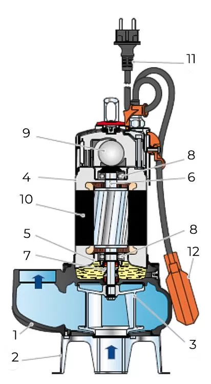 Мощность насоса составляет 750 Вт, максимальный напор - 11 метров, а максимальный расход - 36 м3/час. Диаметр разъема соединения равен 2 дюймам, а серия насоса - MCm. Насос предназначен для водоотведения и устанавливается погружным методом. Он является фекальным насосом с корпусом из чугуна. Работает от сети 220 В с силой тока 5 А. Длина кабеля составляет 5 метров. Наcос имеет пропускную способность до 50 мм частиц и способен перекачивать жидкость с температурой от 1 до 35 градусов по Цельсию. Для защиты от сухого хода насос оснащен поплавковым выключателем. Он предназначен для перекачивания грязной воды. Крыльчатка насоса выполнена из нержавеющей стали, однако насос не имеет встроенного измельчителя. Его габариты составляют 242 мм в длину, 414 мм в высоту и 184 мм в ширину. Вес насоса составляет 19 кг. Он работает на частоте тока 50 Гц и имеет класс защиты IP68. Производительность насоса оценивается на 5 лет, а гарантийный срок составляет 2 года.