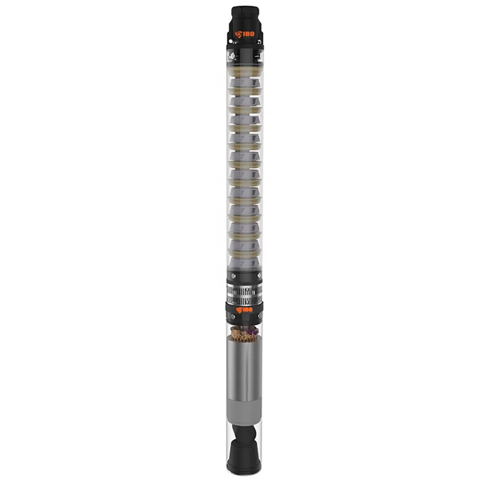 Глубинный насос для скважины IBO 3.5SC 2/14 кабель 20 метров диаметром 90 мм с повышенной устойчивостью к песку. Глубинный насос IBO 3.5SC 2/14 кабель 20 метров отличается своей надежностью и довольно низкой ценой. Неплохой стоимости насоса добились за счет удешевления незначительных компонентов насоса. В насосе IBO 3.5SC 2/14 кабель 20 метров используется технология «плавающих лопастных колес», а также для основных рабочих элементов насоса применяются износостойкие материалы. Благодаря этому насос IBO 3.5SC 2/14 кабель 20 метров имеет повышенную устойчивость к песку. Насос комплектуется кабелем 20 м, по желанию его можно нарастить до нужного размера. Скважинный насос IBO 3.5SC 2/14 кабель 20 метров имеет сбалансированные характеристики, относительно габаритов насоса и мощности электродвигателя. Напор глубинника в максимальной точке составляет 74 м, а производительность достигает максимального показателя в 4.2 м³/час. Мощность электродвигателя насоса составляет 1200 Вт, то вполне неплохо для насоса с такими напорно-расходными характеристиками. Насосы скважинные серии SC марки ИБО были первыми насосами на рынке, названными «анти–песочными». Они по прежнему являются одними из немногих скважинных насосов на рынке, которые имеют конструкции с такой высокой устойчивостью к песку.