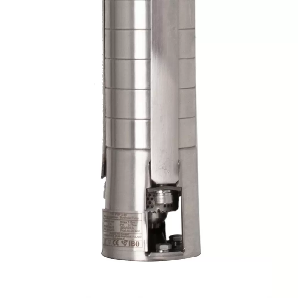 Погружной насос для скважины IBO 3ISP 3/24 диаметром 76 мм выполнен полностью из нержавеющей стали, предназначенные для установки в скважинах диаметром не менее 90 мм. Максимальное содержание песка в воде – до 0,3%. Насос IBO 3ISP 3/24 является одним из самых прочных в отношении конструкции насосом для глубоких скважин благодаря используемым материалам. Заборная часть и напорный патрубок, корпус, вал и роторы 100% изготовлены из нержавеющей стали. Насос поставляются в комплекте с 3–дюймовыми масляными двигателями. Скважинный насос обладает сбалансированными напорно-расходными характеристиками. Максимальный напор насоса составляет 85 м, максимальная производительность равна 3.9 м³/час, при этом мощность электродвигателя 750 Вт. Насосы ИБО серии 3ISP являются первыми насосами на Белорусском рынке, полностью изготовленными из нержавеющей стали диаметром 76мм. Насос комплектуется кабелем 1 м, предназначенный для погружением в воду. По желанию заказчика возможно удлинение кабеля на любую длину.