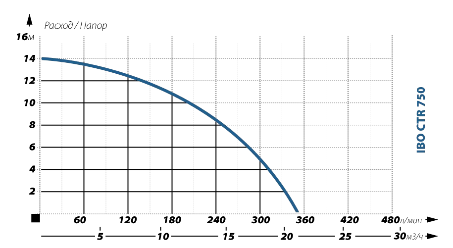 Графические характеристики фекального насоса IBO CTR 750