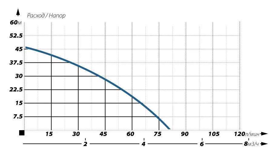 Графические характеристики поверхностного насоса IBO JSW 100