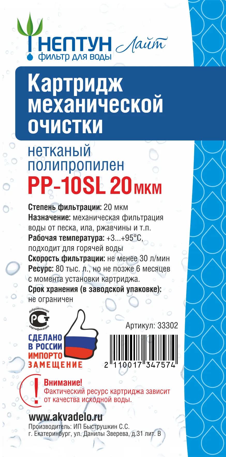 Картридж из нетканого полипропилена Нептун ЭКО PP-10SL 20 мкм