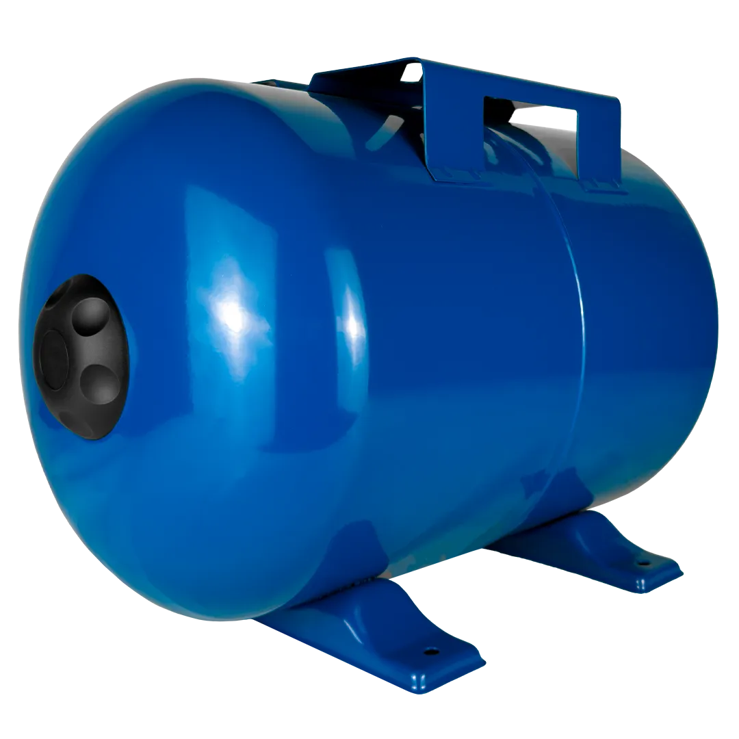 Гидроаккумулятор для воды MAXPUMP H-80 горизонтального исполнения предназначен для систем холодного водоснабжения. Гидроаккумулятор служит для накапливания запаса воды объемом до 80 литров, снижения вероятности возникновения гидравлических ударов в системе, а также сокращения количества пусков насоса, тем самым продлевая срок службы насоса. Конструкция гидроаккумулятора представляет собой стальной корпус, окрашенный в синий цвет, со сменной мембранной, изготовленной из высококачественного материала EPDM, опорными ножками у основания бака, воздушным клапаном и площадкой для установки насоса. Горизонтальные гидроаккумуляторы, благодаря установочной площадке, расположенной на поверхности бака, могут использоваться с поверхностными насосами.