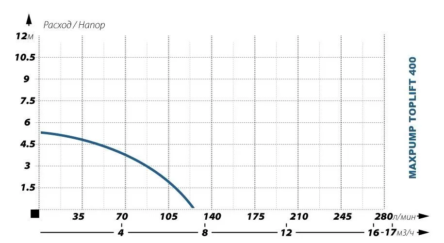 - Максимальный напор: 5 метров