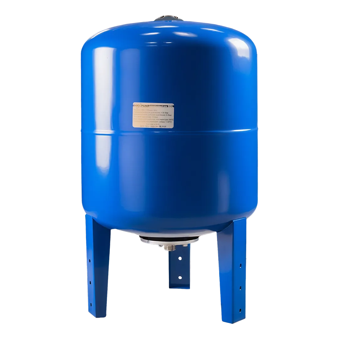 Гидроаккумулятор для воды MAXPUMP V-80л вертикального исполнения предназначен для систем холодного водоснабжения. Гидроаккумулятор служит для накапливания запаса воды объемом до 80 литров, снижения вероятности возникновения гидравлических ударов в системе, а также сокращения количества пусков насоса, тем самым продлевая срок службы насоса. Конструкция гидроаккумулятора представляет собой стальной корпус, окрашенный в зеленый цвет, со сменной мембранной, изготовленной из высококачественного материала EPDM, опорными ножками у основания бака, фланцем и воздушным клапаном. Вертикальные гидроаккумуляторы подходят для использования совместно с погружными насосами.