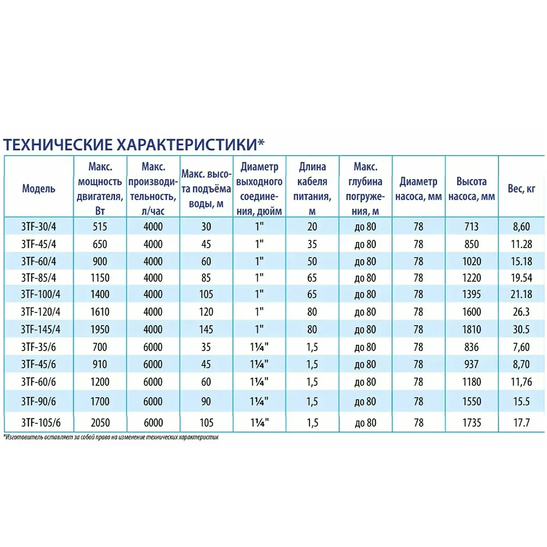 Скважинный насос BELAMOS 3TF-60/6 кабель 1.5 м
