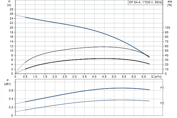 Насос Grundfos SP 5A-4 создан с применением новейших гидравлических технологий. Grundfos SP 5A-4 созданные специально для того, чтобы обеспечивать максимальную эффективность в периоды высокой нагрузки, насос имеет низкую стоимость и высокую надёжность эксплуатации вне зависимости от вида назначения. Grundfos SP 5A-4 обеспечивает высокую эффективность, высокое сопротивление абразивному износу (песку и иным абразивам), защиту от перегрева двигателя и простоту технического обслуживания. Также доступна готовая к применению система контроля и управления, предназначенная для постоянной оптимизации работы насосной системы. Максимальная производительность насоса 7 м3/час, максимальный напор 25 м при мощности электродвигателя 370 Вт. Насос работает от сети 220 в. Гарантийный срок на насос Grundfos SP 5A-4 составляет 2 года.