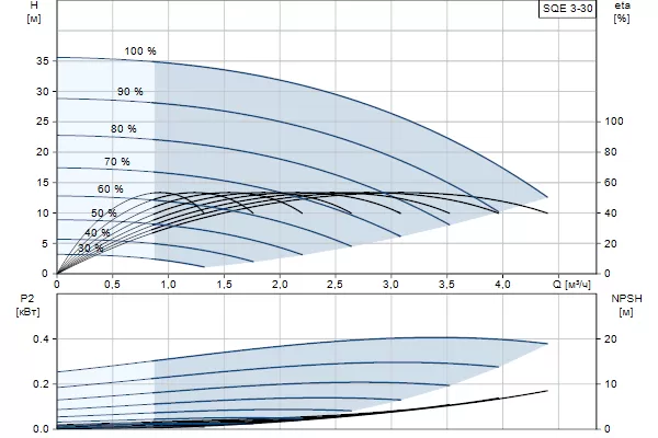 Графические характеристики Grundfos SQE 3 - 30
